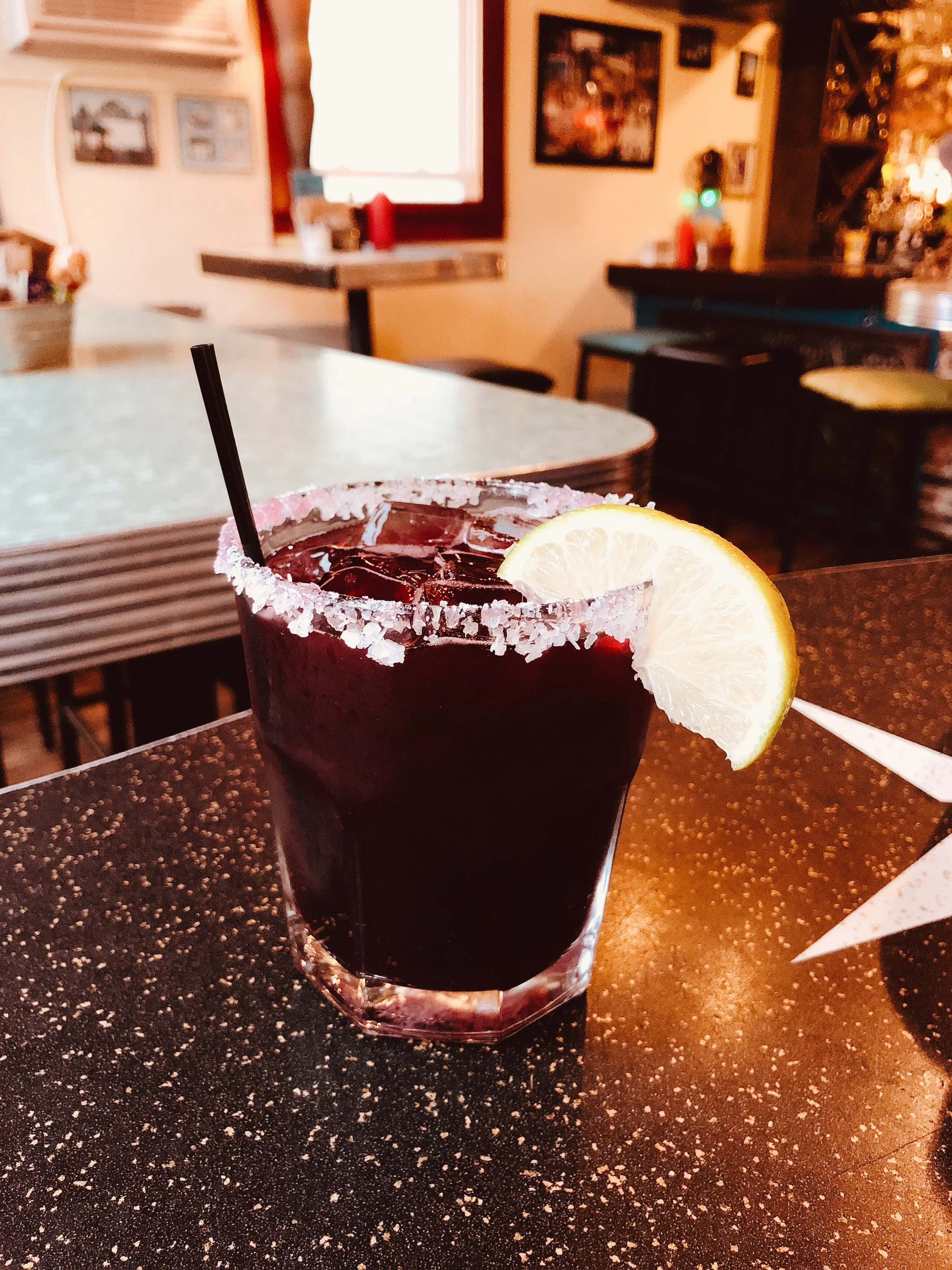Boo- Berry Margarita El Elspolon Tequila, fresh lime juice, sweet berry puree, shaken till perfect and served on the rocks with a Grand Marnier floater